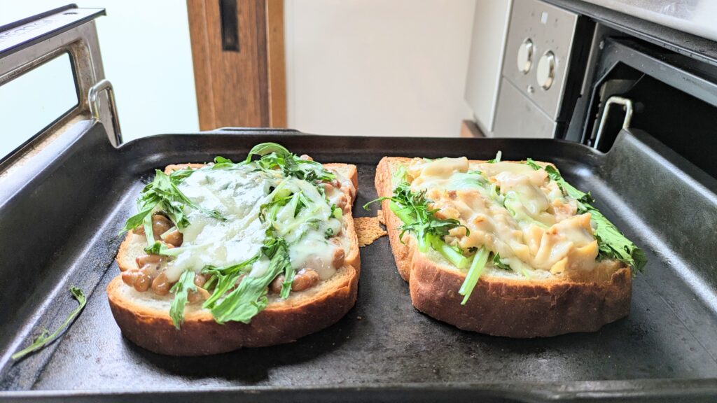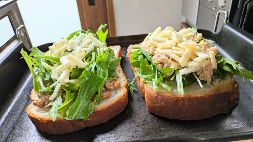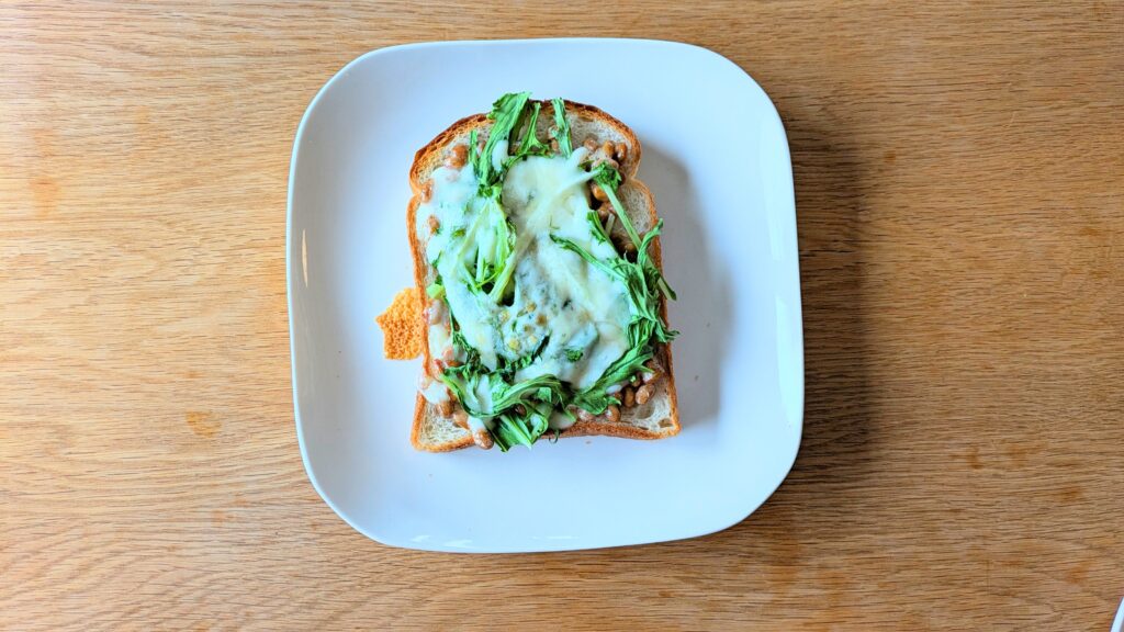 納豆トーストが好きな方は、いつものトーストに水菜をプラスするだけで、栄養価UP♪